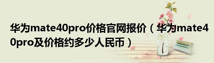 1,华为mate40pro 价格约多少人民币? :华为 Mate 40 Pro目前华为商城官网在售的有:全网通 8GB+256GB版本售价6999元,全网通 8GB+512GB版本售价7999元,全网通 8GB+128GB版本售价6499元。您可以登录华为商城官网了解更多信息,手机产品属于快消电子产品,华为商城的电子产品价格也是会随着市场情况而有一定的调价优惠,最终以华为商城页面价格为准。