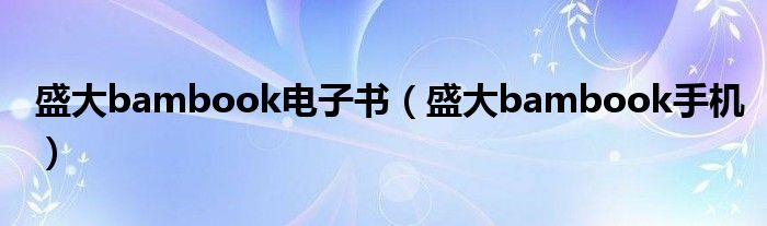 大家好,慧慧来为大家解答以上问题,盛大bambook电子书,盛大bambook手机很多人还不知道,现在让我们一起来看看吧!