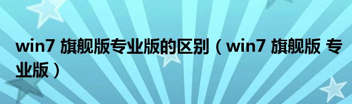 Windows 7专业版和旗舰版有什么区别?相信很多朋友还不太了解。以下是Windows 7专业版和旗舰版区别的答案: