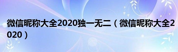 大家好,慧慧来为大家解答以上问题,微信昵称大全2020独一无二,微信昵称大全2020很多人还不知道,现在让我们一起来看看吧!