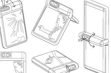 有问题的专利申请向我们展示了以下类似 Z Flip 3 的手机,带有上述旋转摄像头的想法。