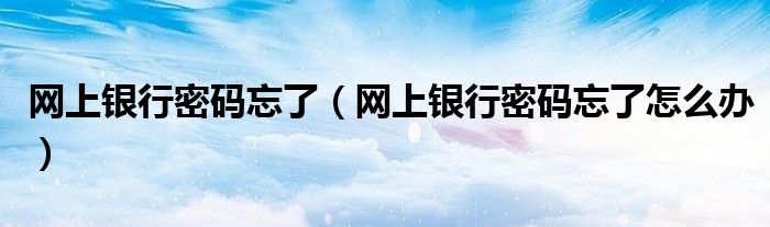 这里介绍一下关于如何忘记网银密码的解决方案。希望对大家有帮助!
