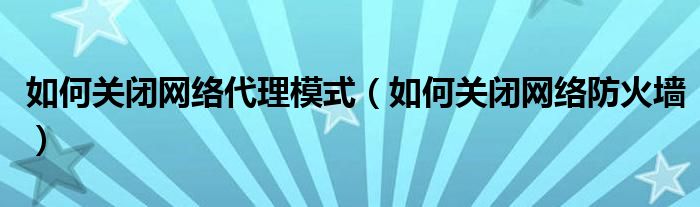 大家好,慧慧来为大家解答以上问题,如何关闭网络代理模式,如何关闭网络防火墙很多人还不知道,现在让我们一起来看看吧!