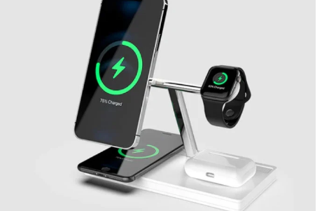 “使用无线充电器支架享受强大的快速充电。它具有全新的 MagSafe Turbo 无线充电 2.0 功能,这意味着当您将 iPhone 12 和 Android 手机关机时,它会充满电 — 超快速和高分辨率音频。适用于 iPhone 12 的 MagSafe 现在可以简化您的充电体验。这种极其方便的解决方案可为您的新 iPhone 12 提供最高 15W 的最快充电速度。利用 MagSafe 技术的强大功能,您只需将 iPhone 12 放在充电座上,即可在纵向或横向模式下实现安全、对齐的连接。磁性充电模块针对您的 Apple Watch 进行了优化,为了完善您的充电解决方案,请将您的 AirPods 放在 Qi 无线充电底座上。旨在从各个角度吸引您,它与任何环境相得益彰。”