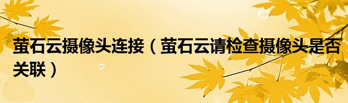大家好,跳跳为你解答以上问题。萤石云摄像头连接,萤石云请检查摄像头是否关联这个问题很多人还不知道,现在让我们一起来看看吧!
