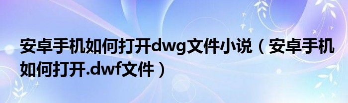 大家好,跳跳为你解答以上问题。安卓手机如何打开dwg文件小说,安卓手机如何打开.dwf文件这个问题很多人还不知道,现在让我们一起来看看吧!
