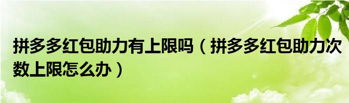 大家好,跳跳为你解答以上问题。拼多多红包助力有上限吗,拼多多红包助力次数上限怎么办这个问题很多人还不知道,现在让我们一起来看看吧!