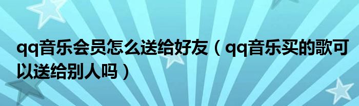 大家好,跳跳为你解答以上问题。qq音乐会员怎么送给好友,qq音乐买的歌可以送给别人吗这个问题很多人还不知道,现在让我们一起来看看吧!