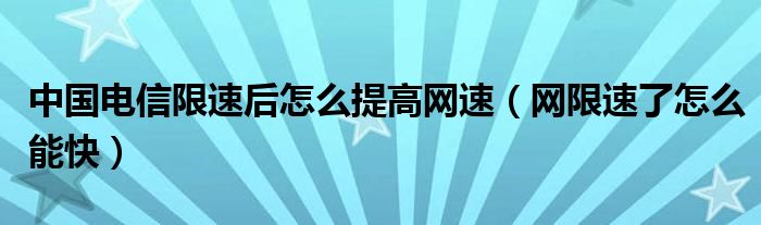 大家好,跳跳为你解答以上问题。中国电信限速后怎么提高网速,网限速了怎么能快这个问题很多人还不知道,现在让我们一起来看看吧!