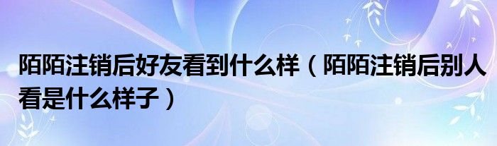 大家好,跳跳为你解答以上问题。陌陌注销后好友看到什么样,陌陌注销后别人看是什么样子这个问题很多人还不知道,现在让我们一起来看看吧!