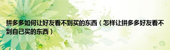 大家好,跳跳为你解答以上问题。拼多多如何让好友看不到买的东西,怎样让拼多多好友看不到自己买的东西这个问题很多人还不知道,现在让我们一起来看看吧!