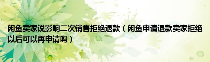 大家好,跳跳为你解答以上问题。闲鱼卖家说影响二次销售拒绝退款,闲鱼申请退款卖家拒绝以后可以再申请吗这个问题很多人还不知道,现在让我们一起来看看吧!