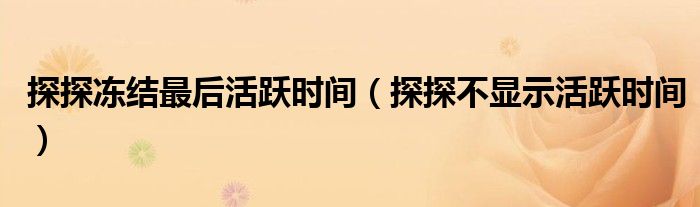 大家好,跳跳为你解答以上问题。探探冻结最后活跃时间,探探不显示活跃时间这个问题很多人还不知道,现在让我们一起来看看吧!
