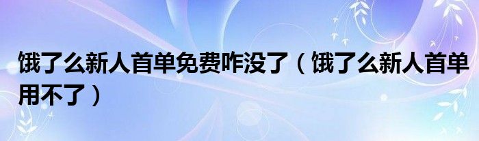 大家好,跳跳为你解答以上问题。饿了么新人首单免费咋没了,饿了么新人首单用不了这个问题很多人还不知道,现在让我们一起来看看吧!