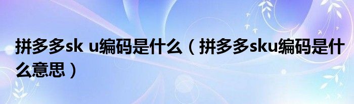 大家好,跳跳为你解答以上问题。拼多多sk u编码是什么,拼多多sku编码是什么意思这个问题很多人还不知道,现在让我们一起来看看吧!
