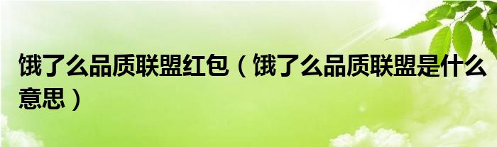 大家好,跳跳为你解答以上问题。饿了么品质联盟红包,饿了么品质联盟是什么意思这个问题很多人还不知道,现在让我们一起来看看吧!