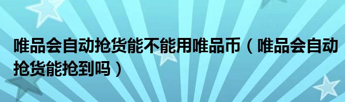 大家好,跳跳为你解答以上问题。唯品会自动抢货能不能用唯品币,唯品会自动抢货能抢到吗这个问题很多人还不知道,现在让我们一起来看看吧!