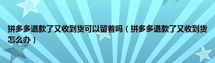 大家好,跳跳为你解答以上问题。拼多多退款了又收到货可以留着吗,拼多多退款了又收到货怎么办这个问题很多人还不知道,现在让我们一起来看看吧!