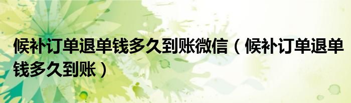 大家好,跳跳为你解答以上问题。候补订单退单钱多久到账微信,候补订单退单钱多久到账这个问题很多人还不知道,现在让我们一起来看看吧!