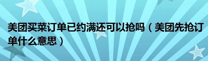 大家好,跳跳为你解答以上问题。美团买菜订单已约满还可以抢吗,美团先抢订单什么意思这个问题很多人还不知道,现在让我们一起来看看吧!