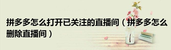 大家好,跳跳为你解答以上问题。拼多多怎么打开已关注的直播间,拼多多怎么删除直播间这个问题很多人还不知道,现在让我们一起来看看吧!