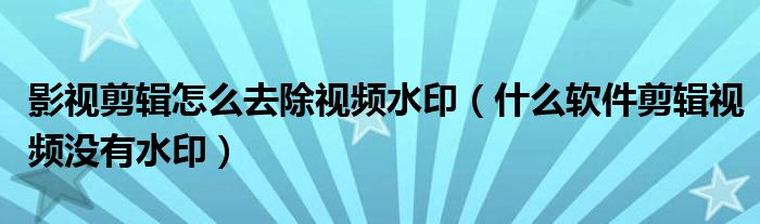 大家好,跳跳为你解答以上问题。影视剪辑怎么去除视频水印,什么软件剪辑视频没有水印这个问题很多人还不知道,现在让我们一起来看看吧!