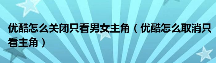 优酷怎么关闭只看男女主角(优酷怎么取消只看主角)