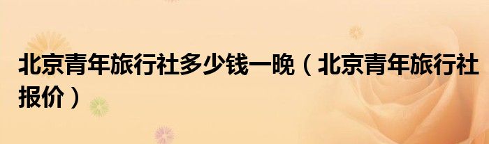 关于北京青年旅行社多少钱一晚,北京青年旅行社报价这个很多人还不知道,今天菲菲来为大家解答以上的问题,现在让我们一起来看看吧!