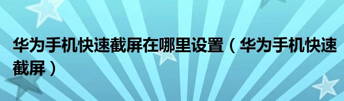 大家好,小晋来为大家解答以下问题,关于华为手机快速截屏在哪里设置,华为手机快速截屏很多人还不知道,今天让我们一起来看看吧!