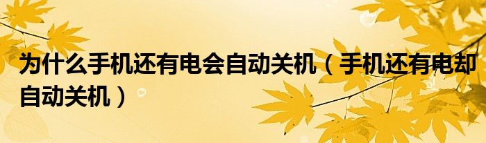 大家好,小晋来为大家解答以下问题,关于为什么手机还有电会自动关机,手机还有电却自动关机很多人还不知道,今天让我们一起来看看吧!