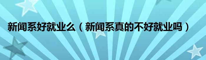 大家好,小晋来为大家解答以下问题,关于新闻系好就业么,新闻系真的不好就业吗很多人还不知道,今天让我们一起来看看吧!