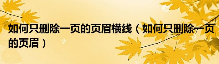 大家好,小晋来为大家解答以下问题,关于如何只删除一页的页眉横线,如何只删除一页的页眉很多人还不知道,今天让我们一起来看看吧!
