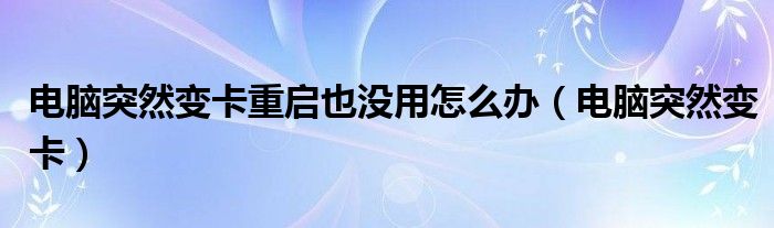 大家好,小晋来为大家解答以下问题,关于电脑突然变卡重启也没用怎么办,电脑突然变卡很多人还不知道,今天让我们一起来看看吧!