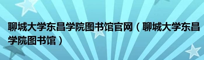 聊城大学东昌学院图书馆官网(聊城大学东昌学院图书馆)