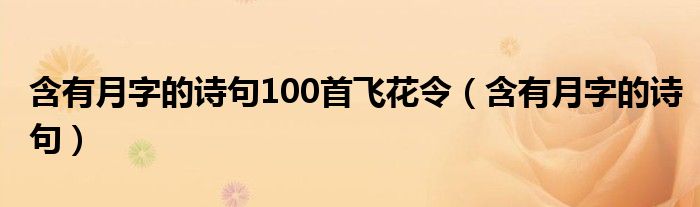 大家好,小晋来为大家解答以下问题,关于含有月字的诗句100首飞花令,含有月字的诗句很多人还不知道,今天让我们一起来看看吧!