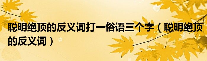 大家好,小晋来为大家解答以下问题,关于聪明绝顶的反义词打一俗语三个字,聪明绝顶的反义词很多人还不知道,今天让我们一起来看看吧!