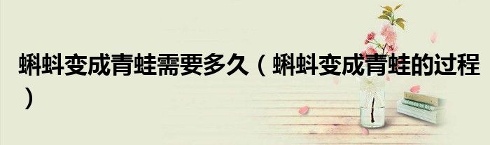 大家好,小晋来为大家解答以下问题,关于蝌蚪变成青蛙需要多久,蝌蚪变成青蛙的过程很多人还不知道,今天让我们一起来看看吧!
