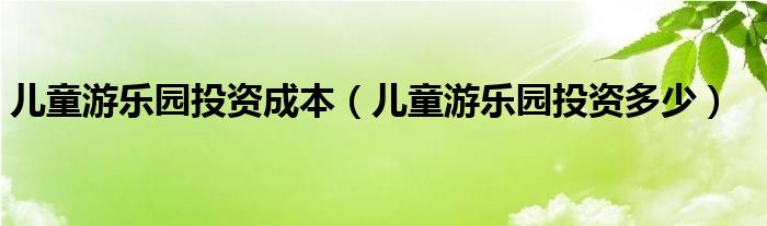 关于儿童游乐园投资成本,儿童游乐园投资多少这个很多人还不知道,今天菲菲来为大家解答以上的问题,现在让我们一起来看看吧!