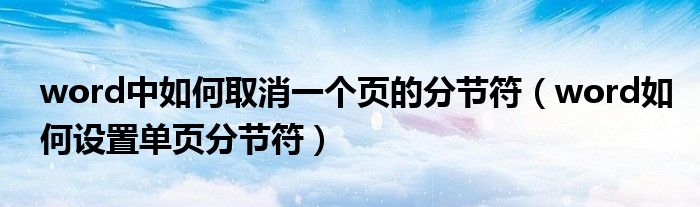 关于word中如何取消一个页的分节符,word如何设置单页分节符这个很多人还不知道,今天菲菲来为大家解答以上的问题,现在让我们一起来看看吧!