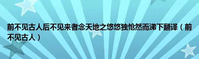 关于前不见古人后不见来者念天地之悠悠独怆然而涕下翻译,前不见古人这个很多人还不知道,今天菲菲来为大家解答以上的问题,现在让我们一起来看看吧!
