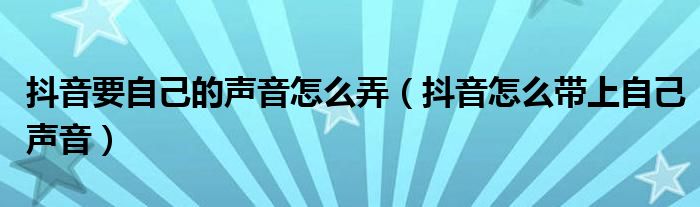 大家好,小晋来为大家解答以下问题,关于抖音要自己的声音怎么弄,抖音怎么带上自己声音很多人还不知道,今天让我们一起来看看吧!