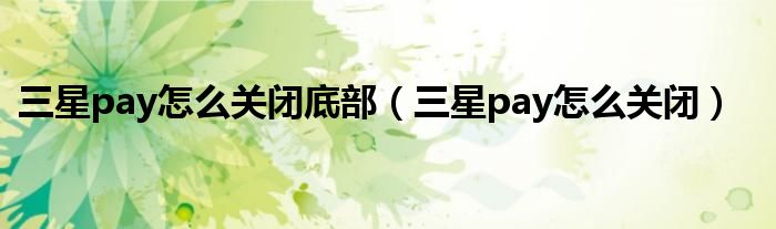 三星pay怎么关闭底部(三星pay怎么关闭)