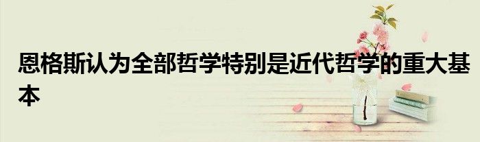 关于恩格斯认为全部哲学特别是近代哲学的重大基本这个很多人还不知道,今天菲菲来为大家解答以上的问题,现在让我们一起来看看吧!