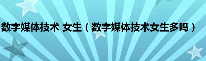 大家好,小晋来为大家解答以下问题,关于数字媒体技术 女生,数字媒体技术女生多吗很多人还不知道,今天让我们一起来看看吧!