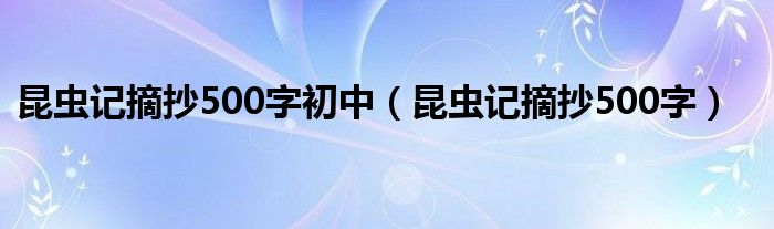 关于昆虫记摘抄500字初中,昆虫记摘抄500字这个很多人还不知道,今天菲菲来为大家解答以上的问题,现在让我们一起来看看吧!