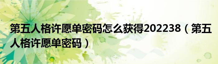 大家好,小晋来为大家解答以下问题,关于第五人格许愿单密码怎么获得202238,第五人格许愿单密码很多人还不知道,今天让我们一起来看看吧!