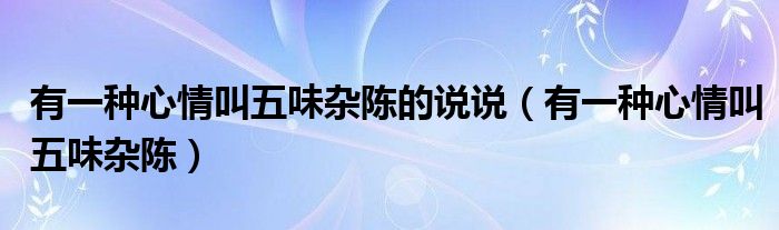 大家好,小晋来为大家解答以下问题,关于有一种心情叫五味杂陈的说说,有一种心情叫五味杂陈很多人还不知道,今天让我们一起来看看吧!