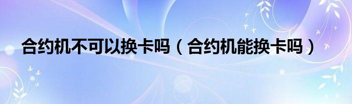 大家好,小晋来为大家解答以下问题,关于合约机不可以换卡吗,合约机能换卡吗很多人还不知道,今天让我们一起来看看吧!