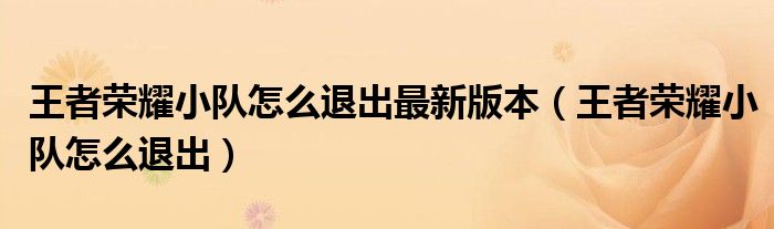 王者荣耀小队怎么退出最新版本(王者荣耀小队怎么退出)