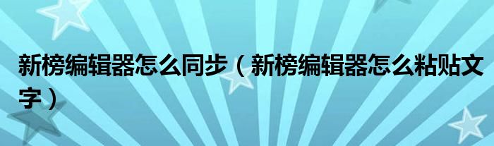 大家好,小晋来为大家解答以下问题,关于新榜编辑器怎么同步,新榜编辑器怎么粘贴文字很多人还不知道,今天让我们一起来看看吧!